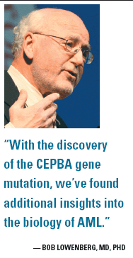“With the discovery of this mutation in one of the alleles or in both alleles on the chromosomes, we’ve found additional insights into the biology of AML,” Dr. Lowenberg said.