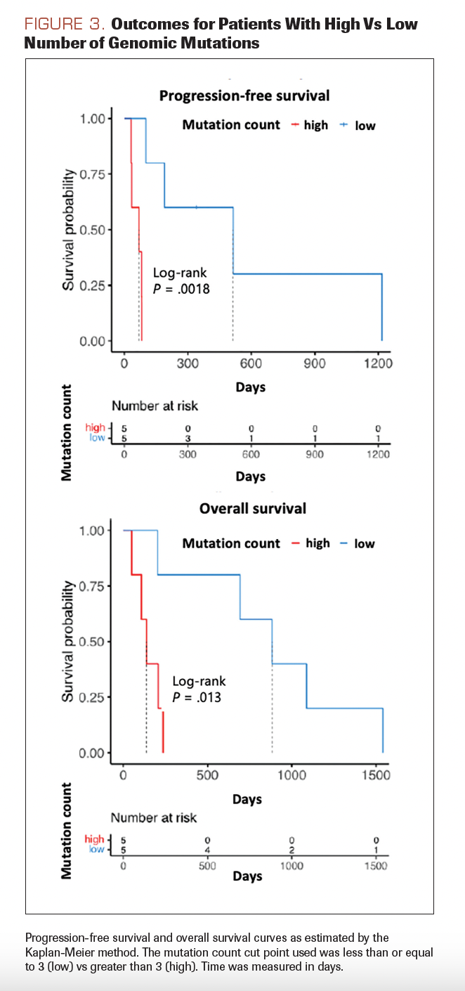FIGURE 3. Outcomes for Patients With High Vs Low Number of Genomic Mutations
