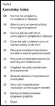 Functional assessment instruments, such as the Karnofsky Performance Scale or Index (Table 6) and Eastern Cooperative Oncology Group (ECOG) Performance Status Scale (Table 7), are widely used to help predict prognosis in cancer patients.[68,69] Studies have shown that these two scales are highly correlated and have predictive validity. Functional status is also used as an outcome measure to gauge response to cancer treatment. For example, ECOG values are followed frequently over the duration of therapy.