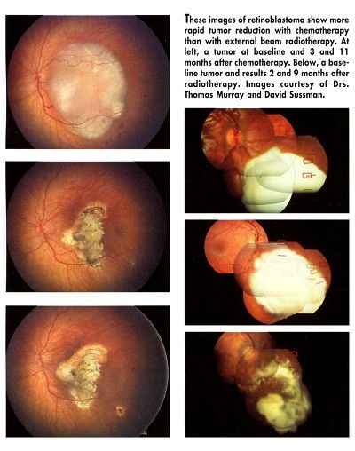 Patients received systemic chemoreduction with carboplatin (Paraplatin), vincristine, and etoposide, with or without cyclosporine, every 3 weeks for seven cycles (69% of patients). For the radiotherapy patients (31%), the researchers utilized a relative lens-sparing technique with single daily fractionation to a total dose of 4,320 to 4,500 cGy. Adjunctive therapy included local ablative transpupillary diode laser therapy (38%) and/or cryotherapy (8%).