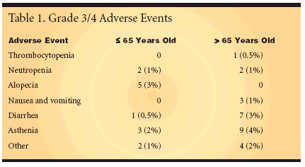 MADRID, SPAIN-Capecitabine(Xeloda) plus irinotecan (Camptosar),in a biweekly schedule as firstlinetreatment of locally advanced ormetastatic colorectal cancer, is an activeschedule with a manageable toxicityprofile, even in patients olderthan 65 years. This conclusion andsupporting results from a phase II trialwere reported by Pilar Garcia-Alfonso,MD, of Hospital Gregorio Maranonin Madrid (abstract 3540).Dr. Garcia-Alfonso said that thebiweekly schedule of capecitabine/irinotecan (XELIRI) was less toxic thanthe standard 3-weekly XELIRI regimen.All 45 patients enrolled in thetrial were evaluable for safety. Grade3/4 toxicities were uncommon (Table1). The most common grade 3/4 toxicityamong patients ≤ 65 years wasalopecia, occurring in 5 patients (3%)younger than age 65 but in no patientsolder than 65. The most common adverseevents among these older patientswere asthenia (nine patients[4%]) and diarrhea (seven patients[3%]).50% Response RateThe overall response rate amongthe 38 patients evaluable for efficacywas 50% (95% confidence interval[CI]: 33%-67%). This total included 3patients with complete responses and16 patients with partial responses. Thetumor-growth control rate (responserate plus stable disease rate) was 87%(CI 95%: 72%-96%). Dr. Garcia-Alfonsosaid that a total of 50 patientswill be enrolled to evaluate time toprogression.