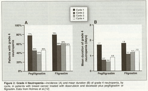 16. Vogel CL, Wojtukiewicz MZ, Carroll RR, et al: First and subsequent cycle use of pegfilgrastim prevents febrile neutropenia in patients with breast cancer: A multicenter, double-blind, placebo-controlled phase III study. J Clin Oncol 23:1178-1184, 2005.