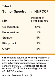 2. Mecklin JP, Jarvinen HJ: Tumor spectrum in cancer family syndrome (hereditary nonpolyposis colorectal cancer). Cancer 68:1109-1112, 1991.