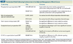 The EORTC trial demonstrated a significant decrease in local recurrence among patients who received CMT vs radiation (8% to 10% vs 17%, P < .001) but no difference in 5-year survival (65%). Only 43% of patients received 95% or more of the planned postoperative chemotherapy, however, which may explain the negative results. Furthermore, a subset analysis of the EORTC trial revealed that patients who responded to preoperative CMT had a survival benefit from postoperative chemotherapy.[56] This retrospective analysis included the group of 785 patients with cT3-4 tumors who underwent a R0 resection; only those who had tumor downstaging to ypT0-2 disease demonstrated improved 5-year disease-free survival (76.7% vs 65.6%, respectively; P = .013).[56] The FFCD trial reported a similar decrease in local recurrence (8% vs 17%, P < .05) and a corresponding increase in pCR (11% vs 4%, P < .05) with preoperative CMT, but no survival benefit (68% vs 67%).