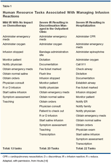 14. Houts AC, Fortner BV, Moore K, et al: Human resource (HR) costs of chemotherapy infusion reactions (IR) in community oncology (abstract 14- 084). Support Care Cancer 14:626, 2006.