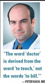 Patients are given access to all this information and anything else they need to weigh their choices about treatment, he said, "and the doctor will get to talk to the patient about what is going on in the way that we were all trained to do. The word 'doctor' is derived from the word 'to teach,' not the words 'to bill.'"