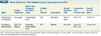 Dacarbazine is the only FDA-approved chemotherapy for malignant melanoma. The approval was based on response rate, not survival. Temozolomide (Temodar) has shown equivalence to dacarbazine and is widely used in community practice for advanced melanoma, although it is not approved by the FDA for this indication. The combination of carboplatin and paclitaxel has been used in multiple randomized studies as a control arm. While occasional complete responses have been reported with chemotherapy, no reliably durable responses have occurred. More recently, a phase III study compared nanoparticle albumin-bound paclitaxel (nab-paclitaxel [Abraxane]) with dacarbazine. The overall response rate for nab-paclitaxel was 15%, compared with 11% for dacarbazine. The median overall survival for nab-paclitaxel was 12.8 months, which was not statistically different from the 10.7-month overall survival seen with dacarbazine. The median progression-free survival for nab-paclitaxel was 4.8 months, compared with 2.5 months for dacarbazine-an increase that was statistically significant.[38] Table A presents selected, control-arm data for chemotherapy from recent phase III studies.