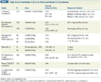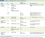 The data set that led to FDA approval of HD IL-2 for melanoma consisted of a series of eight phase II studies that included a total of 270 patients who were treated with HD IL-2 at doses of 600,000–720,000 IU/kg. The overall response rate was 16%; 6% had a complete response. The median duration of response had not been reached at the time of reporting.[13] Thus, HD IL-2 was approved for advanced melanoma in 1998. The Cytokine Working Group conducted three phase II studies of HD IL-2 (at a dose of 600,000 IU/kg) along with gp100 peptide that showed an overall response in 16%; complete response was observed in 9%.[14] In 684 consecutive patients with metastatic melanoma treated at the NCI with HD IL-2 alone or in combination with a vaccine, the overall response rate was 13% for patients who received IL-2 alone and 16% for patients who received IL-2 with the vaccine.[15] A phase III study comparing HD IL-2 alone to HD IL-2 with gp100 vaccine showed the overall response rate to be 6% for IL-2 alone and 16% for the combination.[16] Our own experience with HD IL-2 in 117 patients has been consistent with the above outcomes (see Figure 2). These data are summarized in Table 2.