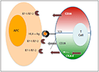 Secondary Regulatory Interaction Between CD28 (Co-stimulatory Molecule) on the T Cell and Molecules in the B7 Family on the APC, Resulting in Activation of the T Cell (Red); Subsequent Interaction Involving CTLA-4 (Co-stimulatory Molecule), Which Displaces CD28 and Leads to Inhibition of the T Cell (Green)