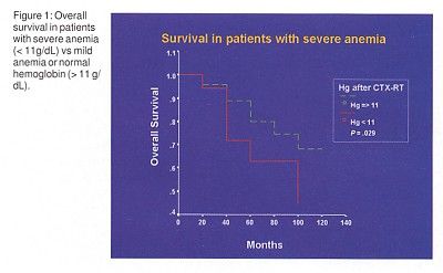 The investigators concluded that patients with mild anemia or normal hemoglobin levels after treatment were more likely to respond to treatment and have their tumors downstaged than those with severe anemia. "Better tumor downstaging correlated with better long-term survival and better local control," said Dr. Phan. "Overall survival for patients with severe anemia was worse." (See Figure 1.)