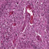 A 20-year-old HIV positive male presents with headache, nausea, and vomiting following a seizure. History is notable for three surgeries to remove colonic polyps. Subsequent MRI brain scan with contrast reveals a mass in the left frontal lobe which is removed. The image above is an H&E stained section of the mass.