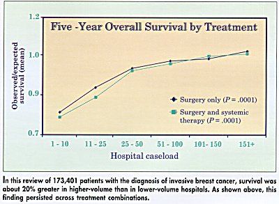 Monica Morrow, MD, reported 5-year survival for breast cancer patients treated with surgery and chemotherapy at 1,238 US hospitals. Although hospital volume has been shown to influence outcome for high-morbidity, complex cancer surgery and chemotherapy, this study population is one that traditionally experiences negligible treatment-related morbidity.
