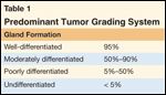 High tumor grade (poor differentiation) has been shown in some studies to be associated with worse outcome; however, it is known that tumor grade can be confounded by relationships with other prognostic markers, including mismatch repair deficient tumors, which have excellent prognosis but are characteristically high grade. Reporting of tumor grade is complicated by the presence of different schemes without any consensus; in general tumor grading is based on the degree of gland formation and architectural and cytologic factors. In practice, there are different schemes without any consensus.