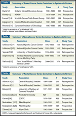 Summaries of Breast, Lung, and Rectal Cancer Series Contained in Systematic Reviews