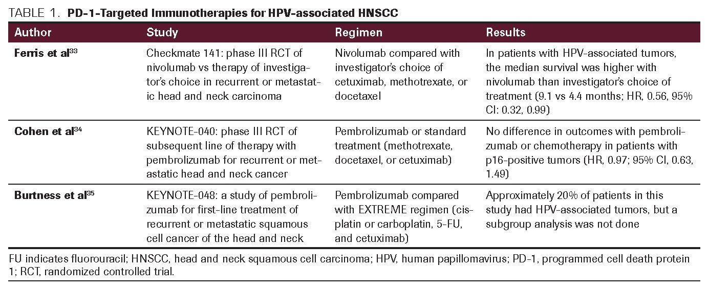 TABLE 1. PD-1-Targeted Immunotherapies for HPV-associated HNSCC