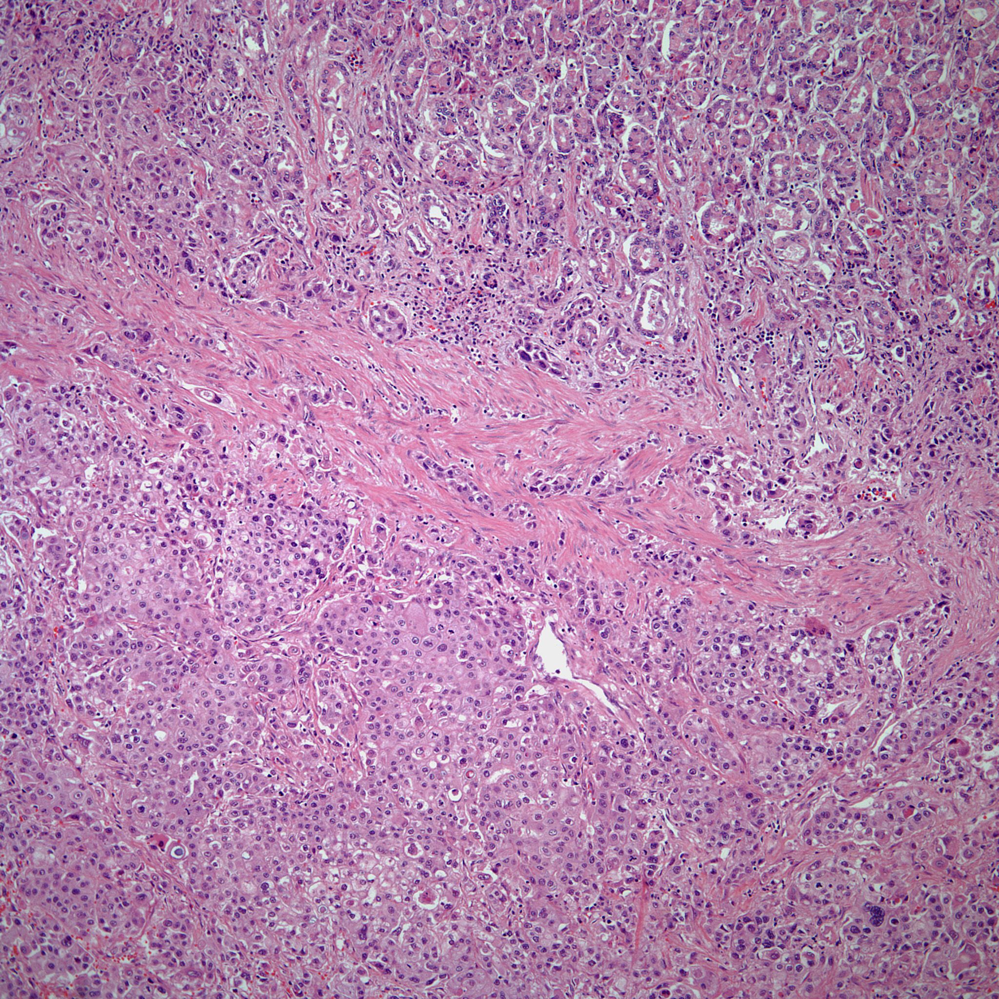 A 59-year-old man presents with abdominal pain. Diagnostic imaging revealed the presence of a gastric mass.