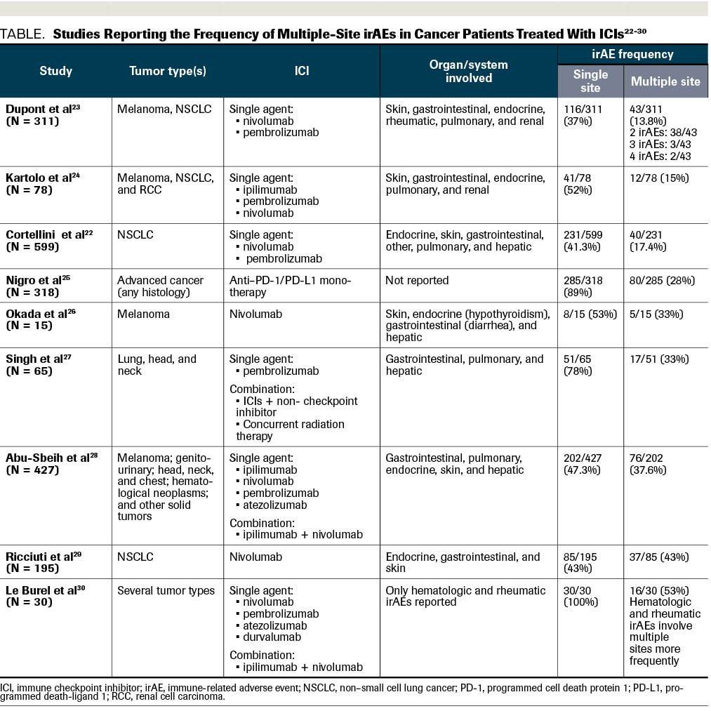 TABLE. Studies Reporting the Frequency of Multiple-Site irAEs in Cancer Patients Treated With ICIs