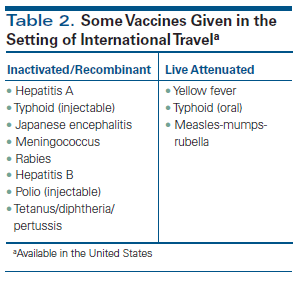 Table 2. Some Vaccines Given in the Setting of International Travel