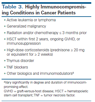 Table 3. Highly Immunocompromising Conditions in Cancer Patients