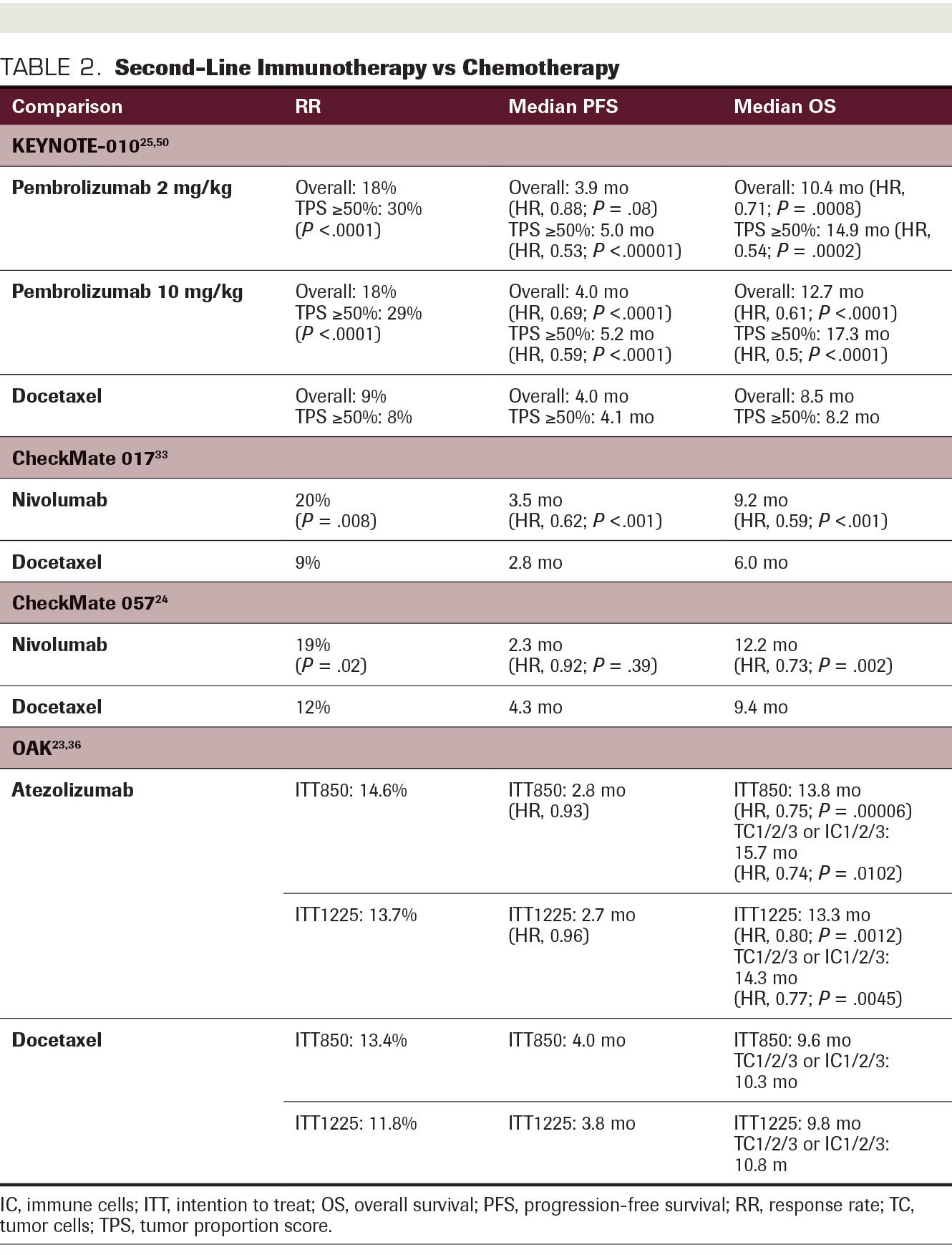 Table 2. Second-Line Immunotherapy vs Chemotherapy