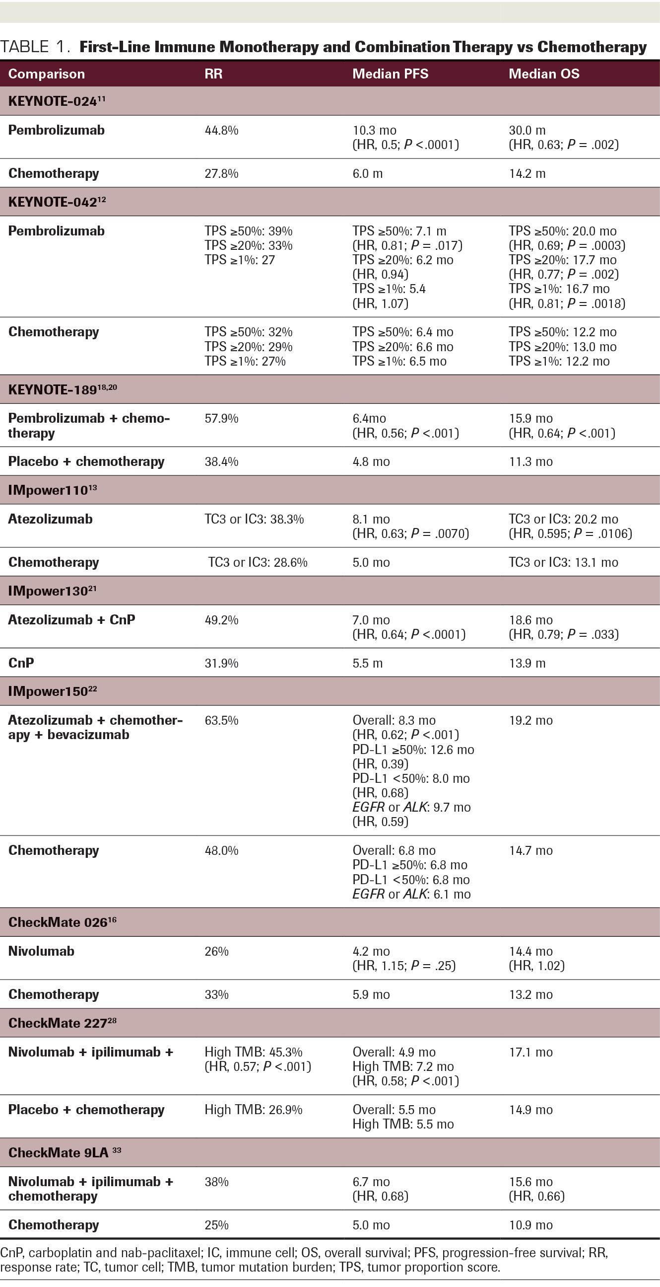 Table 1. First-Line Immune Monotherapy and Combination Therapy vs Chemotherapy