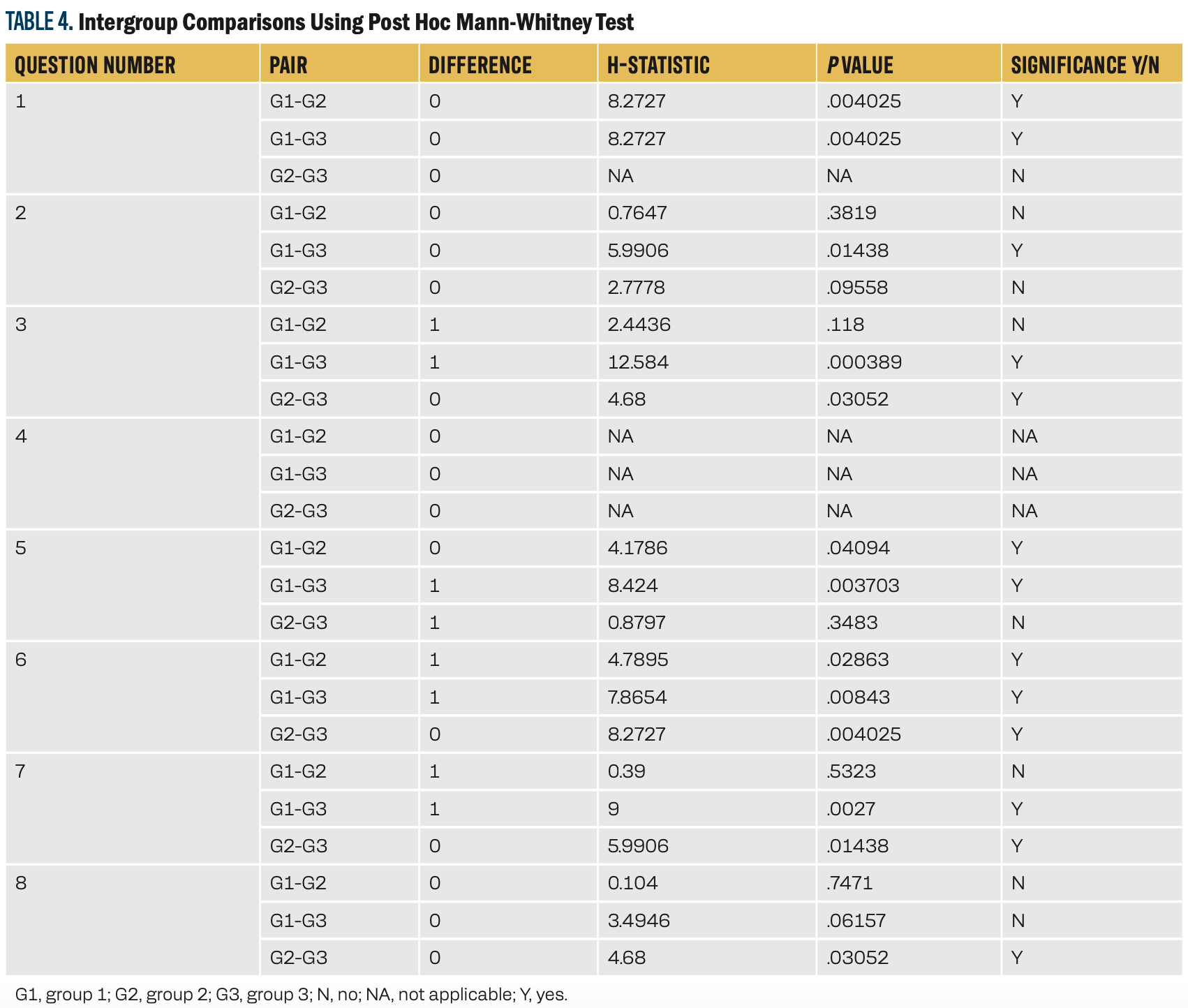 TABLE 3. Comparison Among Groups for Each Question Using Kruskal-Wallis Test