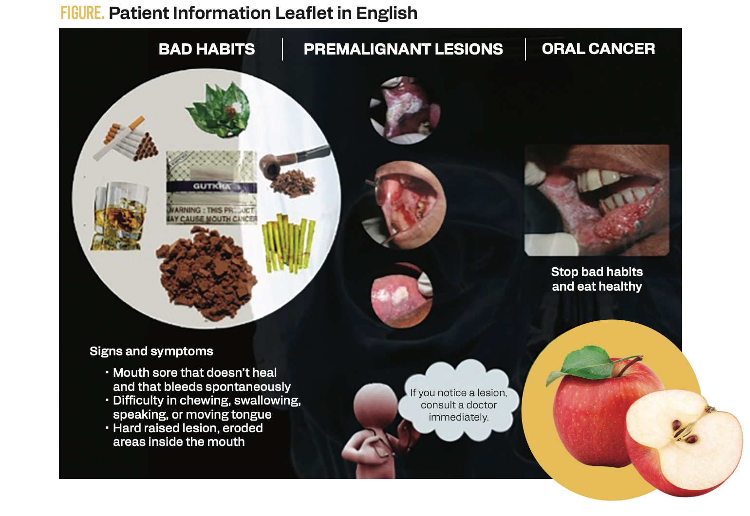 Head and neck cancer is a significant component of the global burden of cancer, with a high mortality rate. Oral leukoplakia (OL) is defined as a “white plaque of questionable risk having excluded (other) known diseases or disorders that carry no increased risk for cancer,” and is a well-known potentially malignant disorder of the oral mucosa.7,8 Reports indicate that when diagnosed, 15.8% to 48.0% of patients with oral squamous cell carcinoma were associated with OL.9-12 The pooled estimate of the annual rate of OL malignant transformation is 1.36% in various populations and geographical areas.13 Data from one such study showed that 39 (17.9%) of 218 patients developed invasive cancer, with a mean malignant transformation period of 5.2 years.14 Motivating reluctant patients for follow-up is crucial; the PIL and the HCC were crafted to reinforce the importance of regular assessments and treatment to mitigate malignant potential.