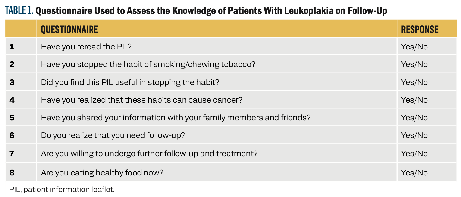 TABLE 1. Questionnaire Used to Assess the Knowledge of Patients With Leukoplakia on Follow-Up