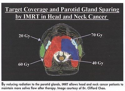 BOSTON-By reducing radiation to the parotid glands, intensity modulated radiation therapy (IMRT) allows head and neck cancer patients to maintain more saliva flow after therapy. Clifford K.S. Chao, MD, of Washington University School of Medicine, St. Louis, reported the study results at the 42nd Annual Meeting of the American Society for Therapeutic Radiology and Oncology.