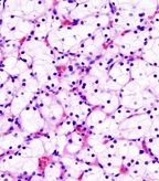 Histopathologic image of clear cell carcinoma of the kidney; nephrectomy specimen; source: KGH, Wikimedia Commons