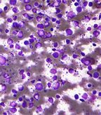 Micrograph of DLBCL, lymph node FNA specimen, field stain; source: Nephron, Wikimedia Commons
