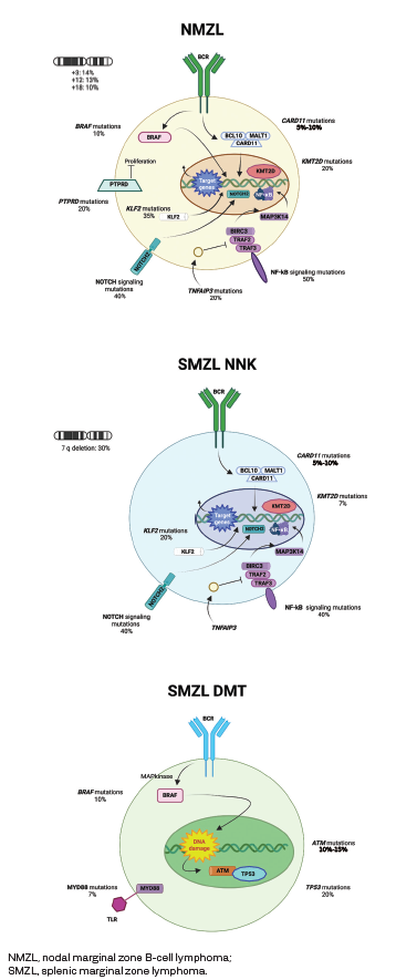 FIGURE 1. Key Molecular Alterations in NMZL and SMZL With NNK and DMT Genotypes