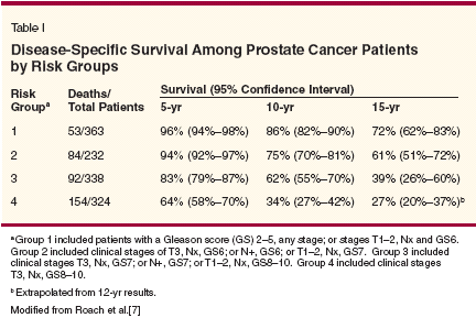 7. Roach M, Lu J, Pilepich MV, et al: Four prognostic groups predict long-term survival from prostate cancer following radiotherapy alone on Radiation Therapy Oncology Group clinical trials. Int J Radiat Oncol Biol Phys 47:609-615, 2000.