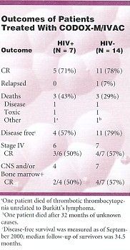 This study built on a report by McGrath and colleagues (J Clin Oncol 14:925-934, 1996) of 2-year event-free survival of 92% in adult and pediatric HIV-negative patients, with particularly impressive results in patients with bone marrow and/or CNS involvement.