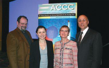 From left, Harris W. Dalrymple, PhD, Anne-Pierre Pickaert, Carol Sawka, MD, FRCPC, and panel moderator Cliff Goodman, PhD, discussed healthcare access in foreign countries at the 2010 ACCC meeting. Image courtesy of ACCC.