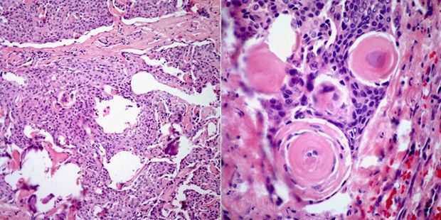 A 52-year-old woman presents with symptoms of neck pain and headache. Radiographic imaging showed the presence of an intracranial mass.