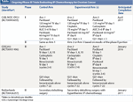 There are currently three phase III trials and multiple phase II trials evaluating IP therapy. Each of these trials takes a different approach to assess the role of IP chemotherapy in the treatment of ovarian cancer. The Canadian CAN-NCIC-OV21 study (NCT00993655) is a phase II/III study comparing IP plus IV chemotherapy versus IV therapy in optimally cytoreduced ovarian cancer patients following neoadjuvant IV chemotherapy. The phase II portion consists of three arms (Table 1), and one of the IP arms will be brought forward for the phase III portion of the trial. This trial will evaluate whether IP therapy results in improved PFS and OS, compared with IV therapy. It is important to note, however, that patients in this study will have been treated with neoadjuvant IV chemotherapy prior to surgical cytoreduction. The US GOG252 study (NCT00951496) is a phase III trial comparing weekly IV paclitaxel plus every-3-week IV carboplatin (Arm 1) against the same weekly IV paclitaxel plus every-3-week IP carboplatin (Arm 2) and against IV paclitaxel plus IP cisplatin and IP paclitaxel (Arm 3). It should be noted that the trial does not have a standard IV paclitaxel and carboplatin every-3-week arm. The trial is designed to address a number of issues, including the use of IP carboplatin, of a modified GOG 172 IP cisplatin regimen, and of weekly paclitaxel. The two carboplatin arms will directly compare the same dose of carboplatin given IP or IV with the same dose of weekly IV paclitaxel. Notably, bevacizumab (Avastin), given both during cytotoxic therapy and as maintenance therapy, is included in all arms of the study. It is unclear how bevacizumab, which improved the PFS benefit in GOG218,[15] will impact IP therapy.