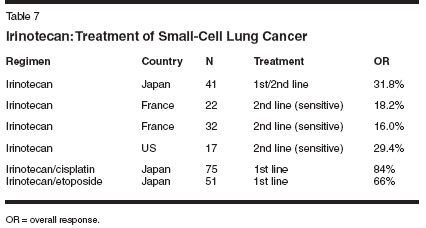 Sunpaweravong P, Holden S, Ratts V, etal: A University of Colorado phase I trial ofirinotecan (CPT-11) and carboplatin in advancedlung cancer (abstract 2642). Proc AmSoc Clin Oncol 22:657, 2003.