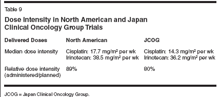 Kinoshita A, Fukoda M, Kuba M, et al:Phase I study of irinotecan (CPT-11) andcisplatin (CDDP) with concurrent thoracic radiotherapy(TRT) in limited-stage small celllung cancer (LS-SCLC) (abstract 1999). ProcAm Soc Clin Oncol 19:511a, 2000.