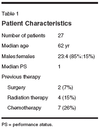 Study Design andPatient PopulationThe protocol was approved by theUCLA, OHSU, Northwestern University,and USC institutional reviewboards. The study was a single-armmulticenter phase II study. The primaryend point was response rate andsecondary end points were safety andsurvival. A two-stage Simon designwas used to calculate sample size.[13]If one response in the first 13 patientswas seen then the study was to accruean additional 14 patients. Patients withhistologically proven adenocarcinomaof the esophagus or gastric cardiawere eligible for the trial. Documentationof the location of the tumor byendoscopy or radiologic study wasrequired. The patients had to have bidimensionallymeasurable disease andadequate hematologic, liver, and renalfunction. Patients required an EasternCooperative Oncology Groupperformance status of > 2. Patientswho had received more than one priortreatment regimen for metastatic disease,were receiving antiepilepticmedication, and had known Gilbert'ssyndrome were excluded. Patients hadscreening laboratories, computed tomography(CT) of the chest, abdomen,and pelvis, and a history andphysical prior to the start of treatment.MethodsPatients received pretreatment withdexamethasone at 20 mg IV, diphenhydramineat 50 mg IV, famotidine at20 mg IV (or similar H2 receptor antagonist),and granisetron (Kytril) at1 mg IV (or similar 5HT3 antagonist).After pretreatment, patients were treatedwith irinotecan at 225 mg/m2 over90 minutes followed by paclitaxel at100 mg/m2 over 3 hours every 3weeks. Atropine was administered asneeded for cholinergic symptoms. Patientswere counseled on the use of,and provided with, high-dose loperamidein case of diarrhea.Response was determined everythree cycles (9 weeks) using CT ormagnetic resonance imaging (MRI)scans using the World Health Organizationcriteria. Responses had to beverified on another radiologic study atleast 4 weeks later, though there wasno provision for early scans as part ofthe protocol. Toxicity was graded usingthe National Cancer Institute CommonToxicity Criteria version 2.0.ResultsA total of 27 patients were enrolledonto the study; see Table 1 forthe demographics. Median age was62 years (range: 45-82 years). Thestriking male predominance (85%) isconsistent with the epidemiology ofadenocarcinomas of the gastroesophagealjunction. Eight patients had priortreatment for their cancer,including some receiving more thanone treatment modality. At this time,22 patients are evaluable for response.The median number of treatment cycleswas 3 (range: 3-20 cycles) andmedian survival was 8.6 months(range: 2-24+ months). The documentedpartial response rate was 27%,with 27% of patients having stabledisease (Table 2). Half of the pretreatedpatients were evaluable hadpartial responses (3 of 6).Toxicity was manageable, withthree admissions for neutropenic fevers.In the 16 patients with completetoxicity data representing 110 cycles,only nine grade 3 and one grade 4neutropenia were reported. Diarrheawas uncommon with only three reportsof grade 3 and none of grade 4.DiscussionThe proper treatment of advancedcarcinoma of the gastroesophagealjunction remains unclear. Clearly,irinotecan and paclitaxel are both activeagents in this disease, and theircombination appears to have significantactivity, even in previously treatedpatients. While single-agentpaclitaxel possesses activity, this is atthe cost of significant neutropenia thatmay require the use of growth factors.[5] Other combinations usingthese drugs may have gastrointestinaland bone marrow toxicity.[7] This regimenis convenient and well toleratedwith minimal neutropenia and diarrhea.In addition to collecting clinicaldata, we plan to examine molecular correlates including UDP-glucuronosyltransferase(UGT) 1A1 polymorphisms[14] and beta-tubulin IIIisoform levels[15] potentially to helpidentify, respectively, both patients atincreased risk of toxicity, and tumorsless likely to respond to taxanes.