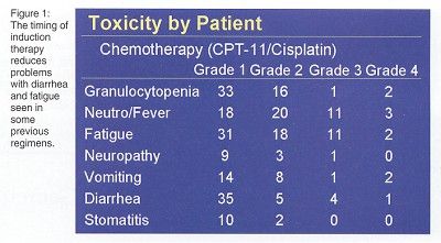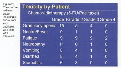 Dr. Ajani said that altering the timing of induction chemotherapy greatly reduced problems with diarrhea and fatigue seen in with some previous regimens (Figure 1). The chemoradiotherapy stage including 5-FU and paclitaxel was also well tolerated (Figure 2). "We almost never have to admit anyone for hospital treatment of complications with this regimen," he said.