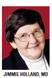 While attending Baylor University in Waco, Tex., the war ended. By the time Jimmie Holland entered Baylor Medical School in Houston, the college was fi lled with older men, veterans returning from the war. “When I started medical school, I was one of only 3 women accepted into a class of more than 90 men. I did well, loved the experience,” she said.