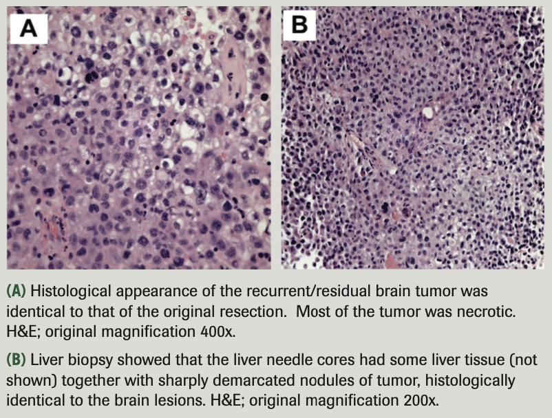 Ghulam Gous, MD, and colleagues report a case of glioblastoma with extensive liver metastases along with a review of previous reports of liver metastasis from glioblastomas and the possible mechanisms of metastasis.