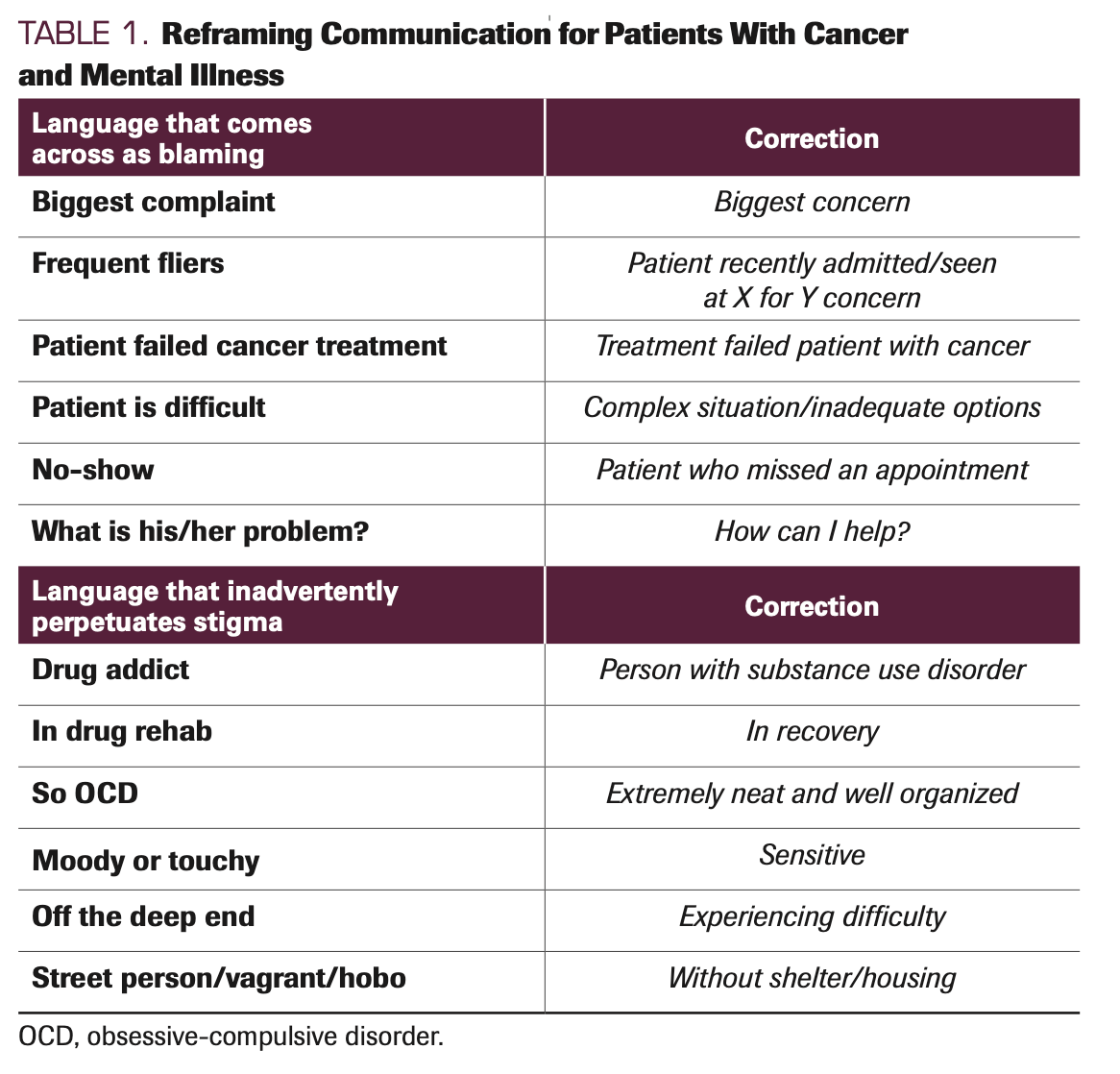 TABLE 1. Reframing Communication for Patients With Cancer and Mental Illness