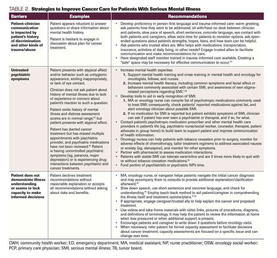 TABLE 2. Strategies to Improve Cancer Care for Patients With Serious Mental Illness