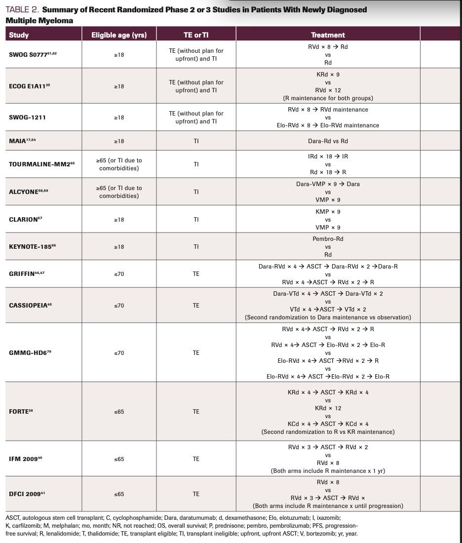 TABLE 2. Summary of Recent Randomized Phase 2 or 3 Studies in Patients With Newly Diagnosed Multiple Myeloma