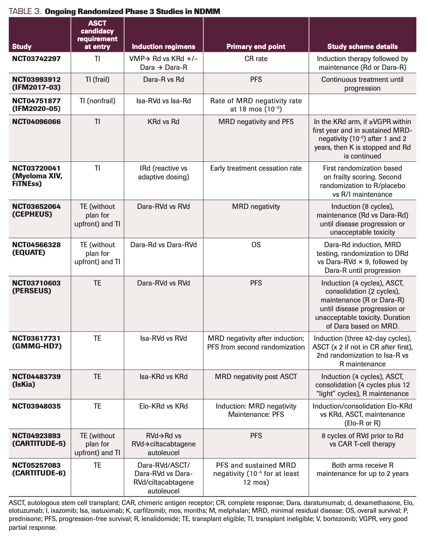 TABLE 3. Ongoing Randomized Phase 3 Studies in NDMM