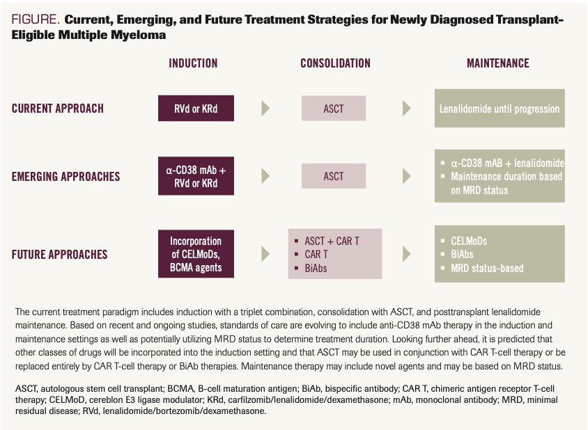 FIGURE. Current, Emerging, and Future Treatment Strategies for Newly Diagnosed Transplant- Eligible Multiple Myeloma