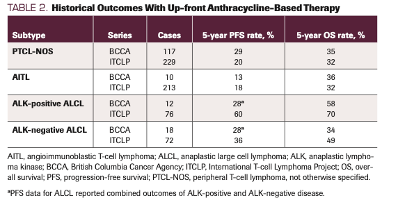 Finally, we generally do not offer up-front allogeneic transplant to those in CR1 with PTCL-NOS, AITL, and ALK-negative sALCL (unlike other