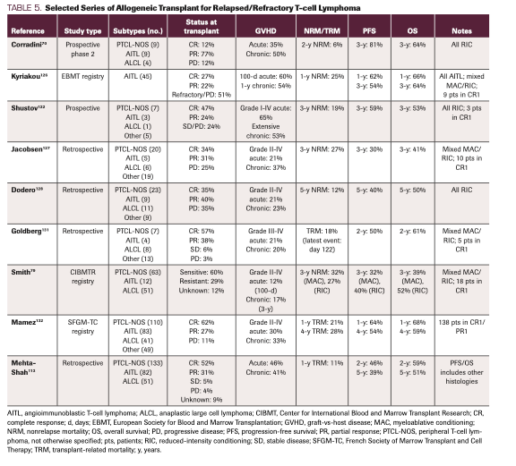 TABLE 5. Selected Series of Allogeneic Transplant for Relapsed/Refractory T-cell Lymphoma